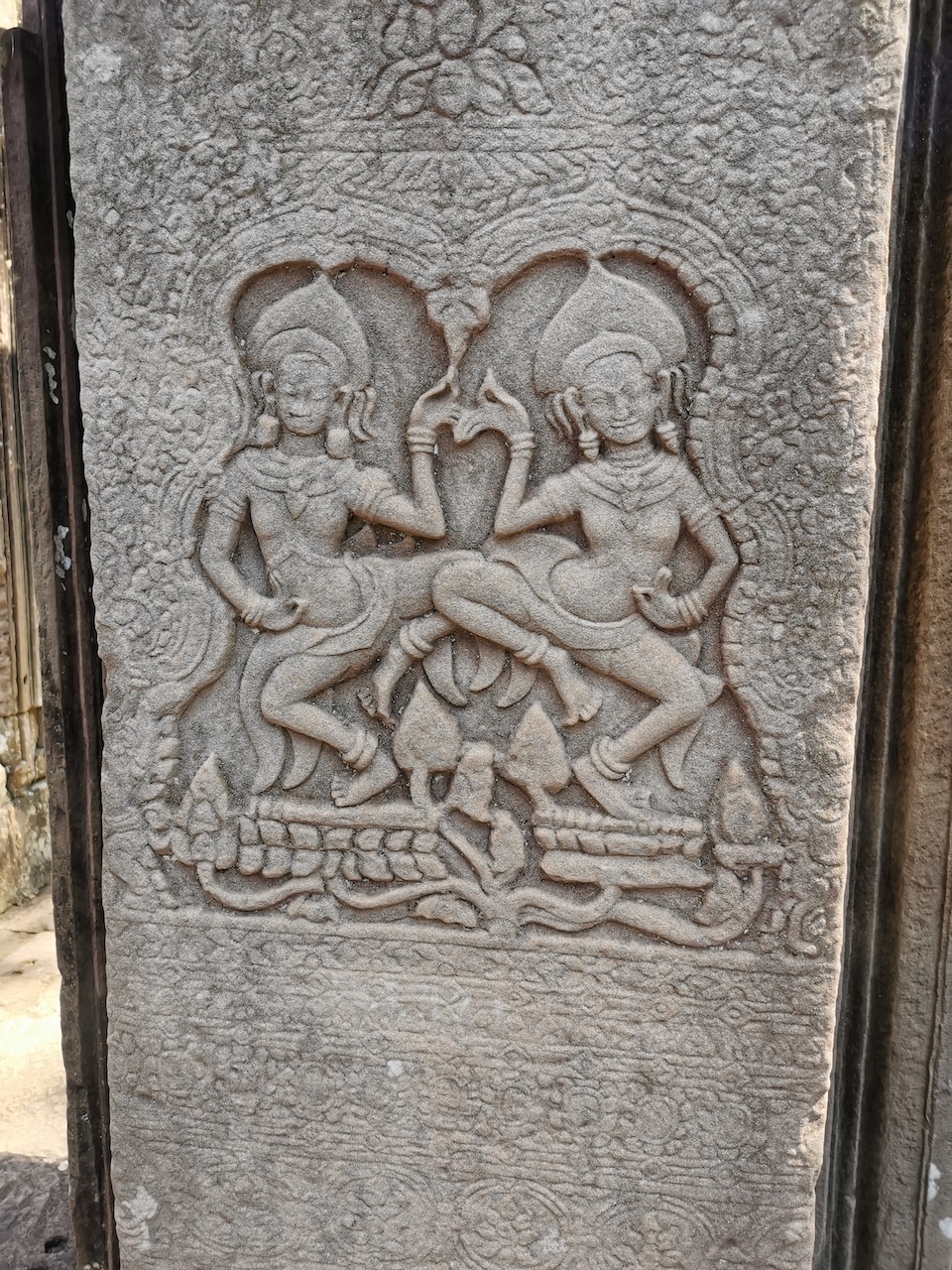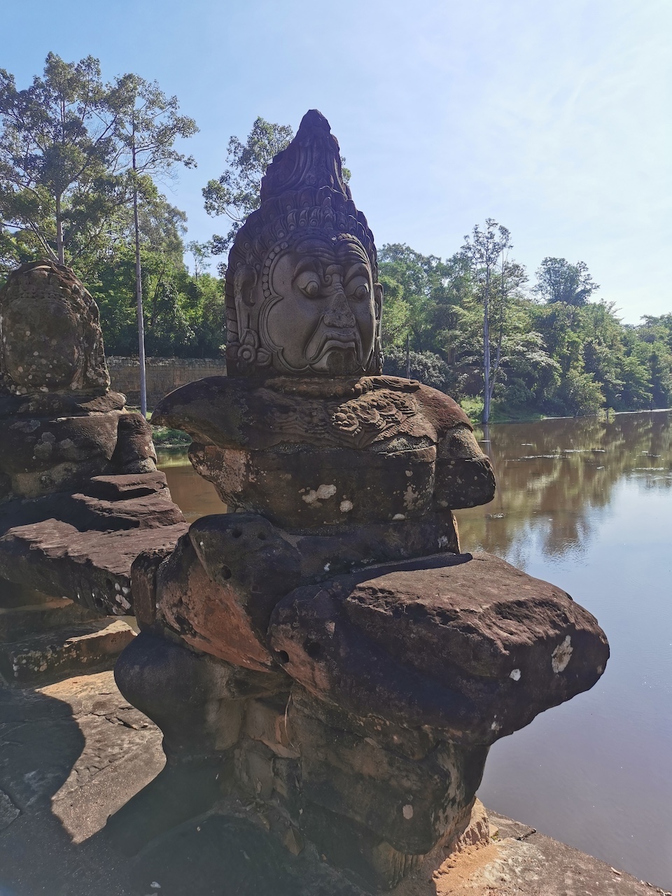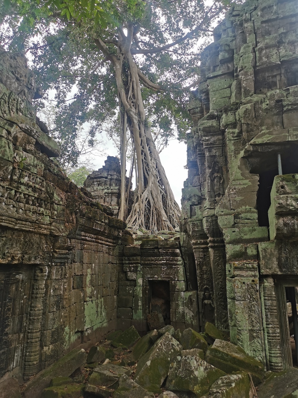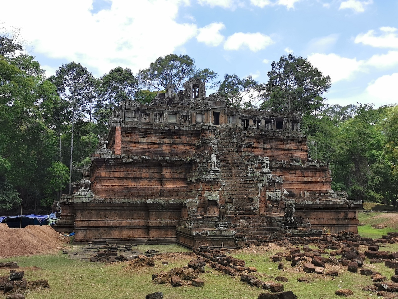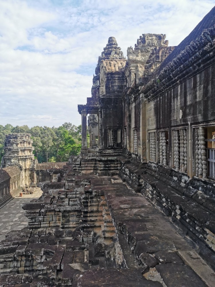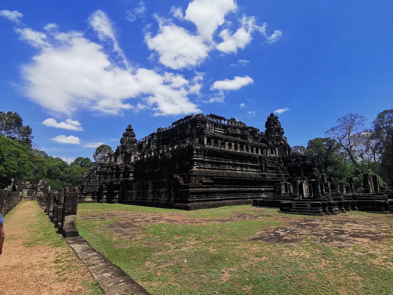 Une fois la dégustation terminée, notre hôte nous propose de partir à la découverte de l’île et quoi de mieux pour le faire qu’à vélo? Il s’éclipse rapidement chez des voisins afin de nous dégoter des vélos adaptés aux filles et nous partons tous les quatre sur la seule route de l’île. Une petite boucle de 9km environ nous attend, le tout à plat (heureusement vu l’âge de nos vélos…). Notre rythme est très tranquille, c’est un rythme de découverte et d’admiration des lieux. Nous n’hésitons pas à nous arrêter afin d’observer les gens dans les champs, les quelques temples ou encore une partie de volley (sport très apprécié car nous avons vu un peu partout au Cambodge des personnes s’y adonner en fin de journée). Nous peinons à trouver l’arbre aux chauves-souris géantes dont nous a parlé Virek… Raté, cette fois nous n’en verrons pas, car nous n’arrivons pas à trouver ce satané arbre 🤦🤦🏼♀️ ! Partis avec nos maillots de bain, nous renonçons cependant à nous baigner, les eaux brunes du Mékong ne nous attirant que très peu 🙃.