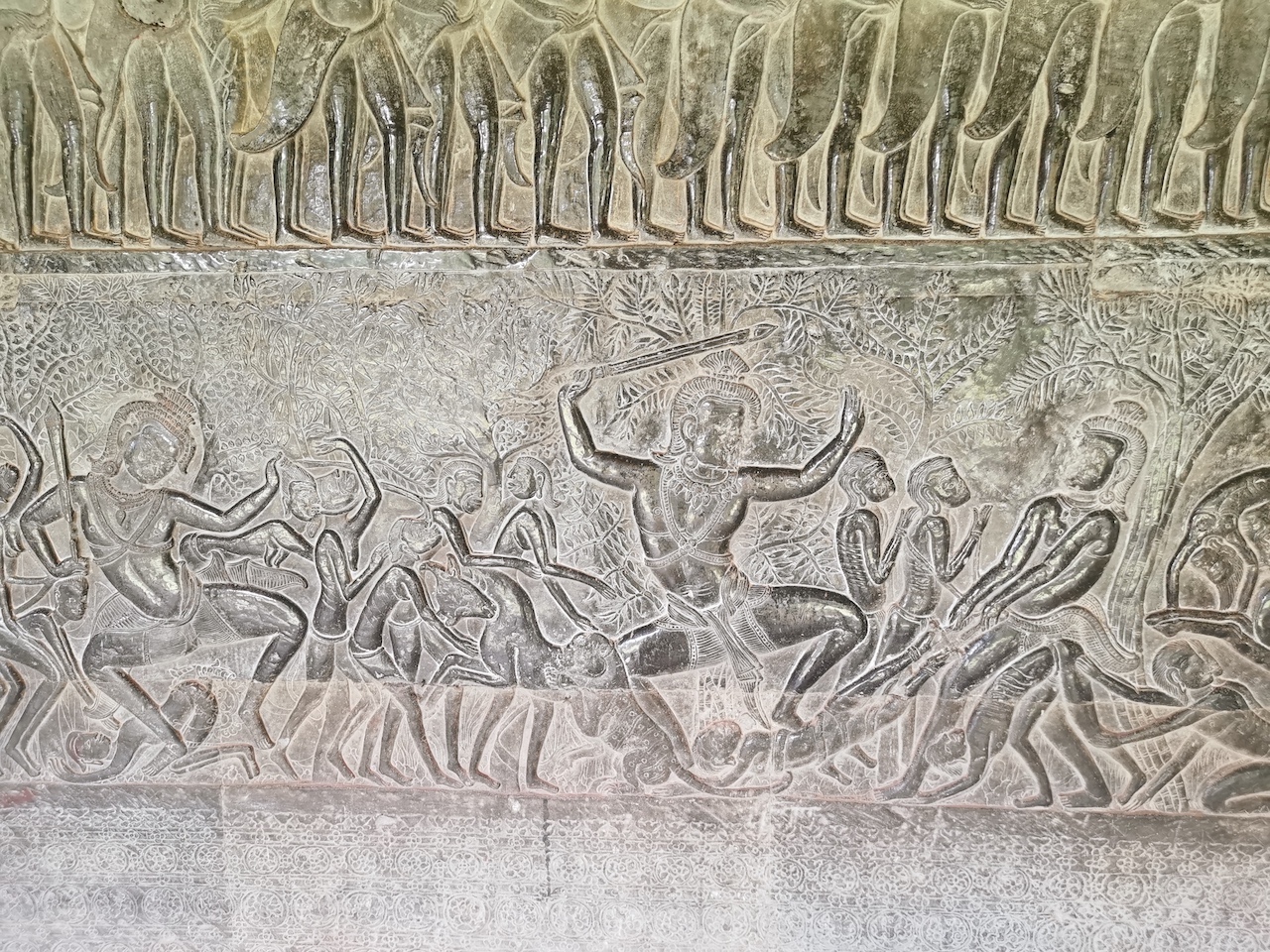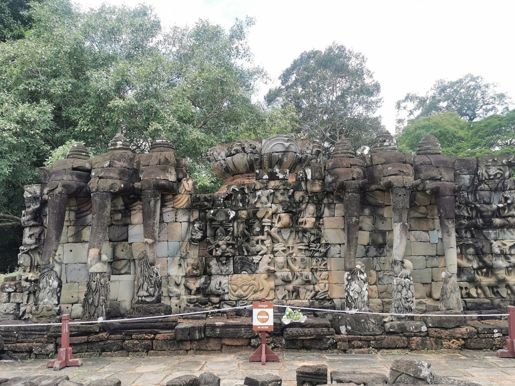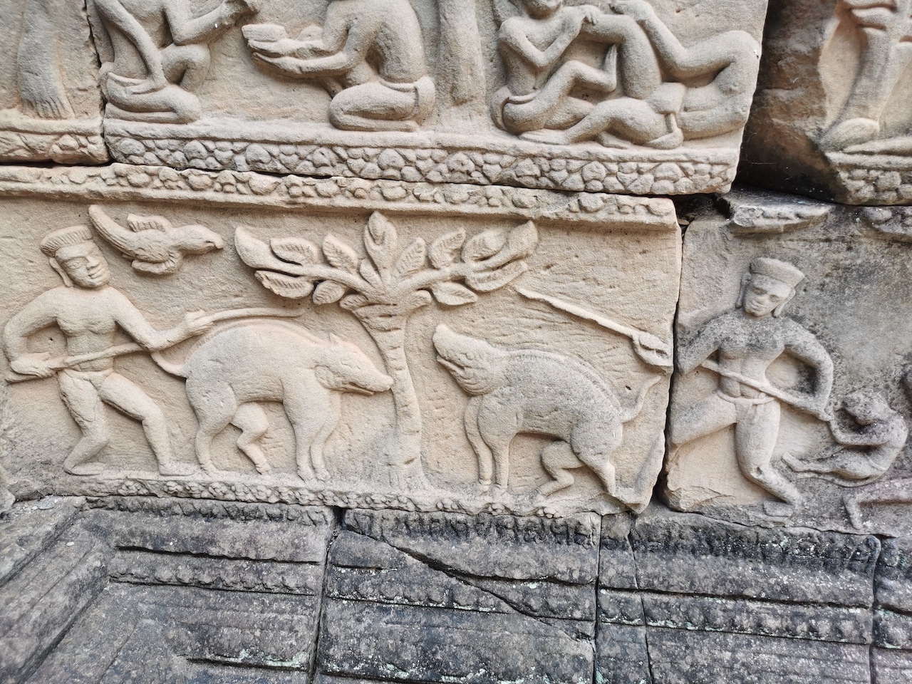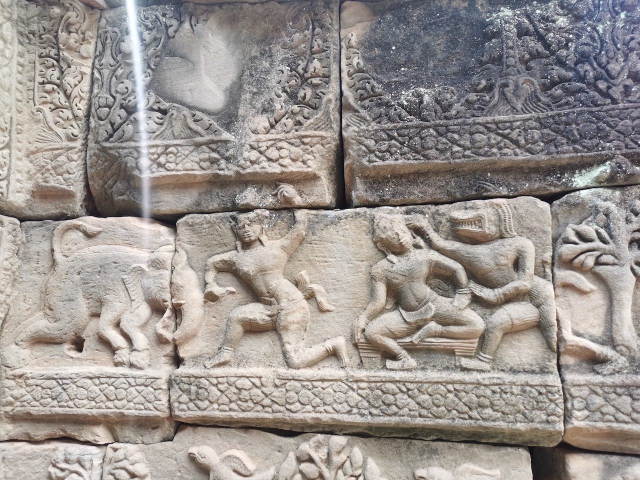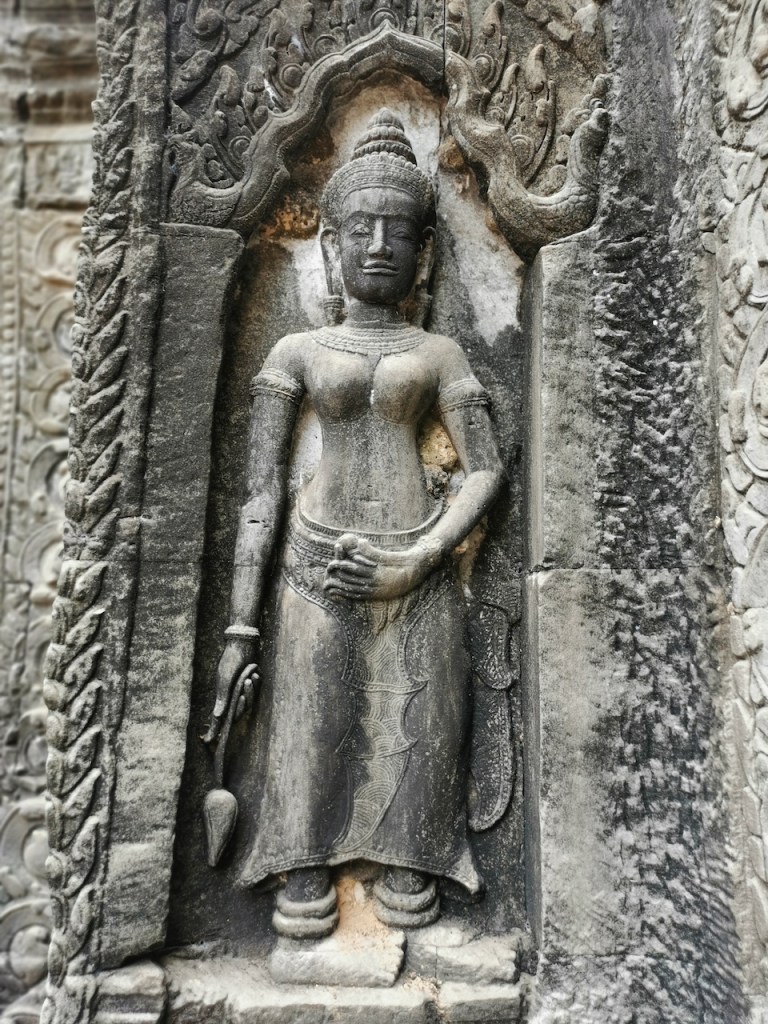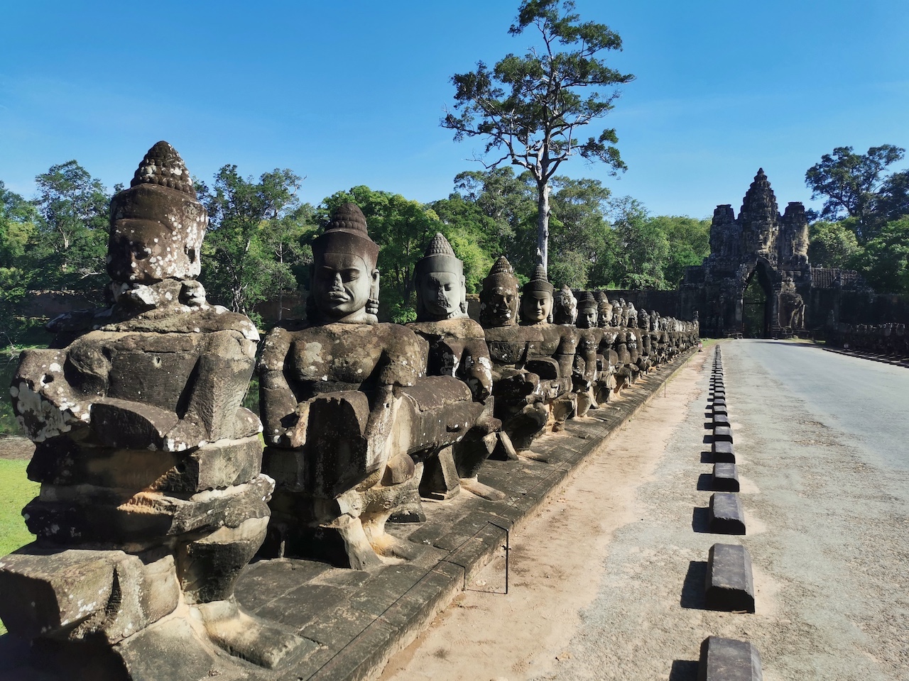 Une fois la dégustation terminée, notre hôte nous propose de partir à la découverte de l’île et quoi de mieux pour le faire qu’à vélo? Il s’éclipse rapidement chez des voisins afin de nous dégoter des vélos adaptés aux filles et nous partons tous les quatre sur la seule route de l’île. Une petite boucle de 9km environ nous attend, le tout à plat (heureusement vu l’âge de nos vélos…). Notre rythme est très tranquille, c’est un rythme de découverte et d’admiration des lieux. Nous n’hésitons pas à nous arrêter afin d’observer les gens dans les champs, les quelques temples ou encore une partie de volley (sport très apprécié car nous avons vu un peu partout au Cambodge des personnes s’y adonner en fin de journée). Nous peinons à trouver l’arbre aux chauves-souris géantes dont nous a parlé Virek… Raté, cette fois nous n’en verrons pas, car nous n’arrivons pas à trouver ce satané arbre 🤦🤦🏼♀️ ! Partis avec nos maillots de bain, nous renonçons cependant à nous baigner, les eaux brunes du Mékong ne nous attirant que très peu 🙃.