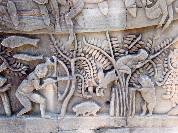 Très rapidement, nous observons quelques dos qui sortent de l’eau. Il nous semble qu’il y ait plusieurs individus mais c’est très difficile de réussir à nous approcher d’eux. Entre leurs déplacements et la dérive de nos kayaks en raison du courant, nous les voyons souvent sortir trop tard car nous ne regardons pas au bon endroit. Malgré la difficulté de bien les voir, nous ne leur « courrons » pas après car nous souhaitons justement ne pas trop les déranger. C’est un moment magique et excitant de les observer, en plein milieu du Mékong. Après une bonne heure de recherche, notre guide nous fait signe qu’il est l’heure de sortir et de rejoindre la terre ferme. Comme le tourisme n’a pas vraiment encore repris, nous avons eu la chance d’être les seuls sur le Mékong durant cette sortie, sans avoir à côtoyer les bateaux à moteur.