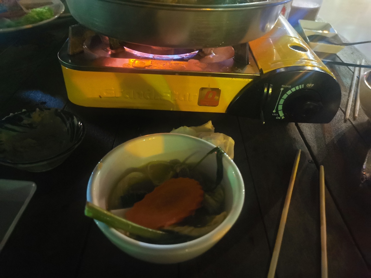 Les champignons frits font tout de suite l’unanimité… même du côté de Ficelle 😂 ! Notre hôte nous explique que son voisin lui a une fois demandé pourquoi il lui achetait autant de champignons et il a pris un air perplexe quand Virek lui a expliqué que « les touristes adorent ça » 🙃.