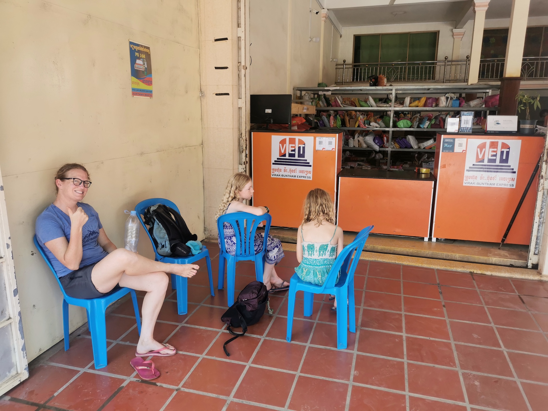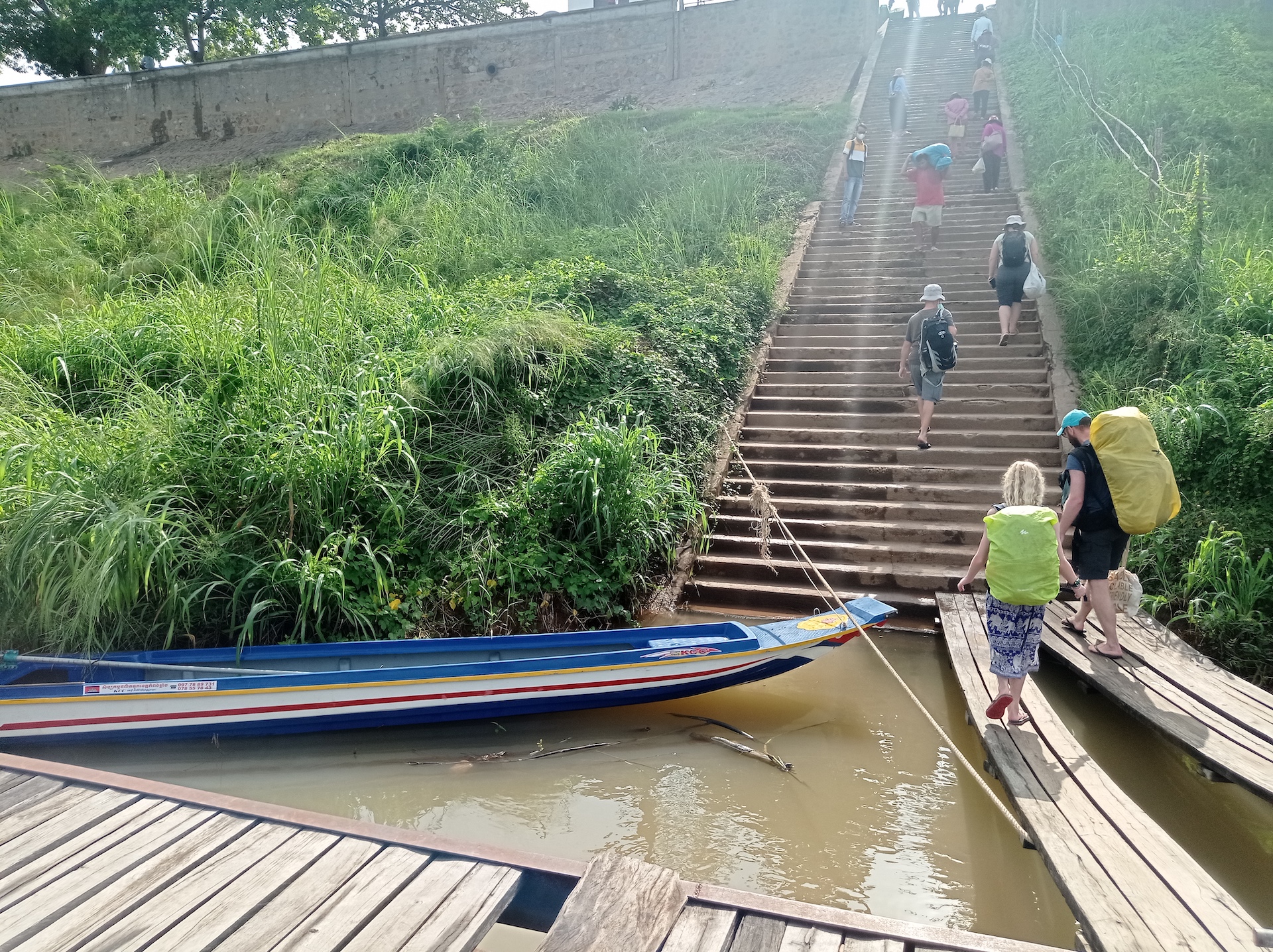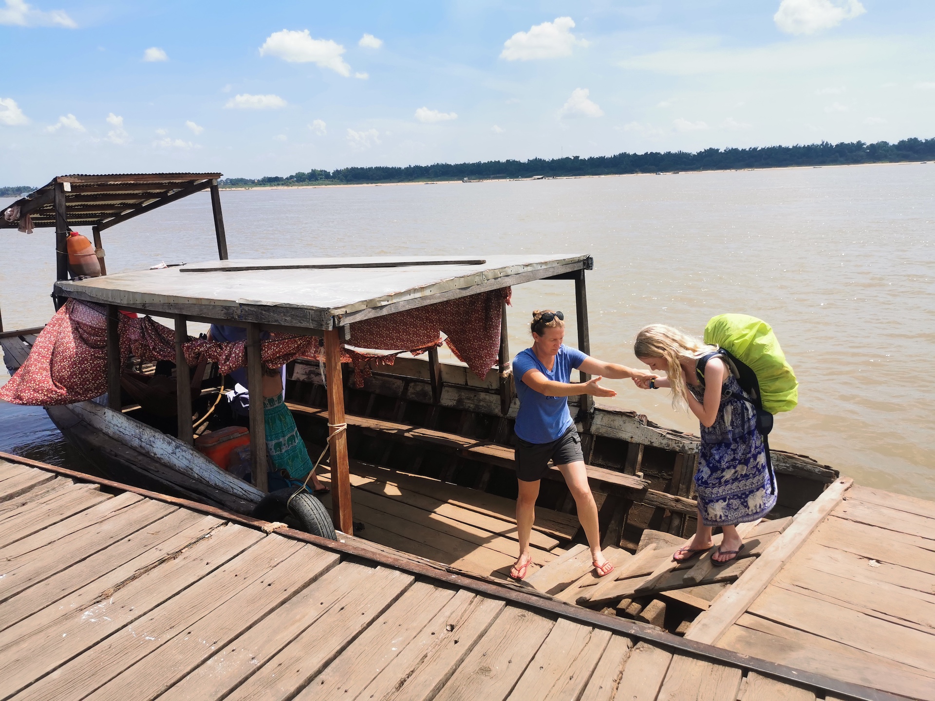 Pfiouuuu… Difficile ce réveil… Nous avons eu un violent orage au milieu de la nuit qui a réveillé toute la famille. C’est surtout Estelle qui en a fait les frais, elle qui n’est plus du tout confiante lorsque le tonnerre gronde et que la tempête fait rage. Encore plus depuis notre mauvaise expérience à Torotoro en Bolivie ⚡️. Enfin bon, pas le temps de nous plaindre, nous ne pouvons pas nous permettre de rater le bus, ils ne sont pas nombreux. Le temps de faire nos adieux à Virek et de le remercier pour ces deux superbes journées en sa compagnie, nous reprenons le petit bateau pour traverser le fleuve et rejoindre la ville de Kratie.