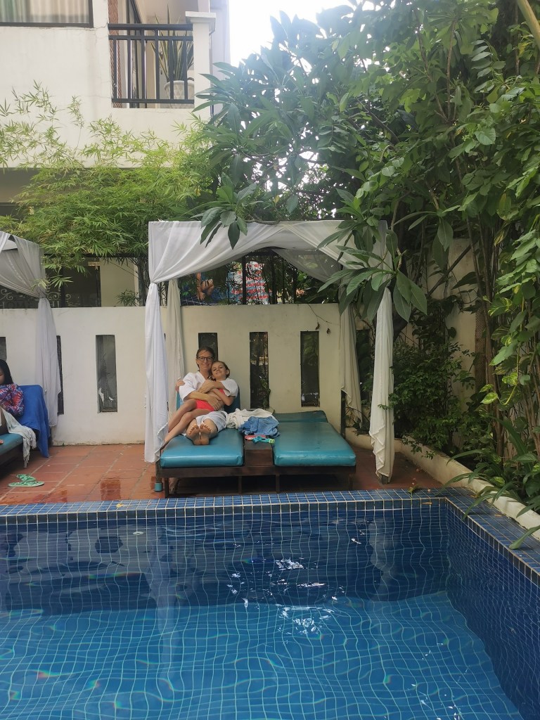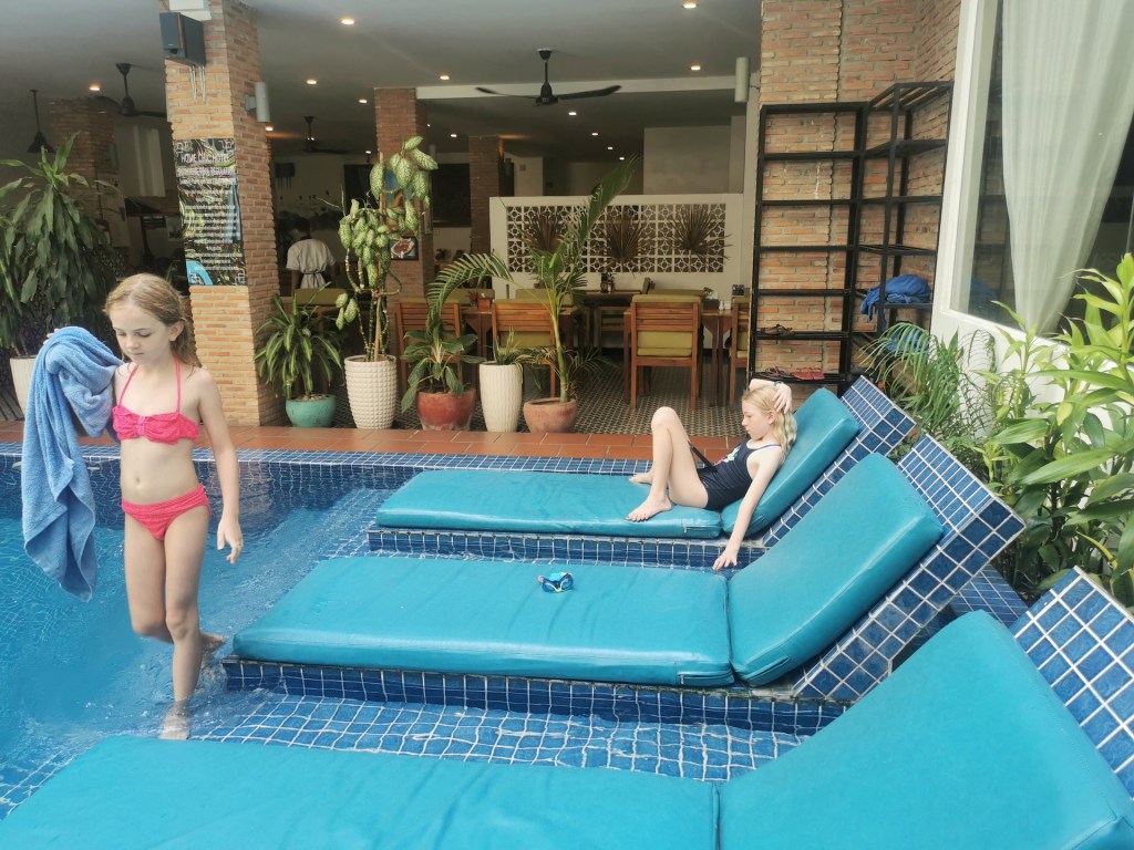 Malgré la chaleur les filles ne se plaignent pas (trop…) et au bout d’une petite demi-heure, nous arrivons à Pomelo Homestay, notre point de chute pour les deux prochaines nuits!