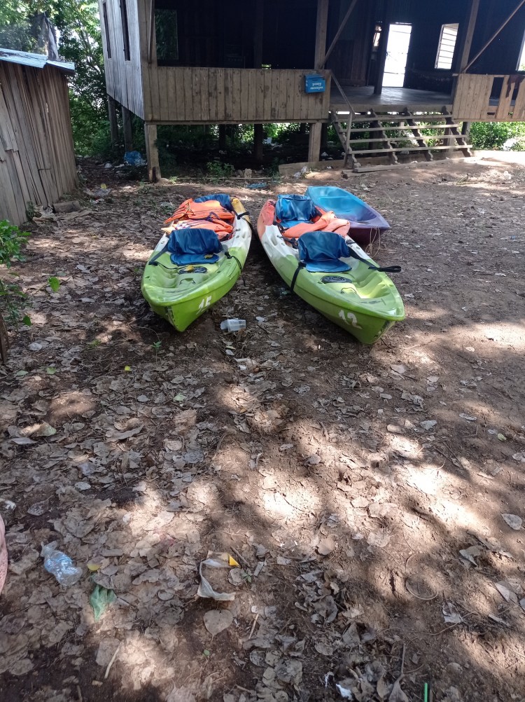 Ces dauphins de rivière ont une tête en forme de melon (ils font penser à la créature d’Alien), un tout petit bec ainsi qu’une nageoire dorsale peu développée. Ils sont plutôt discrets donc nous espérons avoir la chance de les apercevoir. Nous avons choisi l’option douce pour aller à leur rencontre, à savoir la descente du fleuve en kayak 🛶. La solution la plus facile et populaire auprès des touristes est d’emprunter de gros bateaux à moteur, mais ils ont tendance à perturber ces fragiles dauphins dans leur habitat.