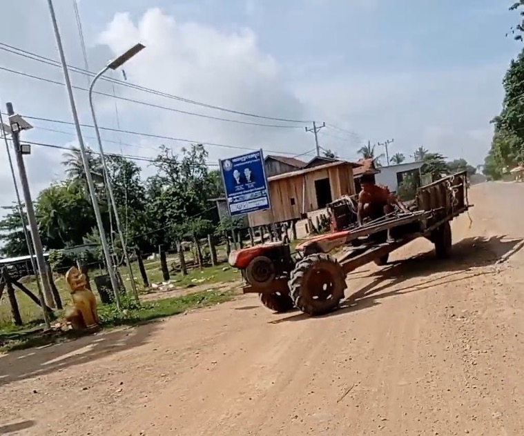 Après à peine dix minutes de traversée, nous arrivons sur l’île où de nombreux scooters attendent les passagers afin de les conduire dans les différents hameaux. Koh Trong n’est pas bien grande, elle ne fait que huit kilomètres de long environ, et il n’y a qu’une seule route (trop étroite pour des voitures) qui fait le tour de l’île. la plupart des gens se déplacent en scooter, en vélo, à pied ou encore en charrette, tirée par des chevaux ou des boeufs. Notre pension chez l’habitant n’étant pas très éloignée du débarcadère, nous décidons de nous y rendre à pied et Virek, notre hôte, nous rejoint en cours de route. En chemin, nous croisons les habituels panneaux présentant des politiciens du « Cambodian People’s Party », le parti khmer à la tête du pays depuis 1979. Ces visages sont vraiment affichés partout dans le pays!