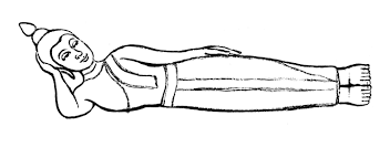 Bouddha couché: le Bouddha au moment de sa mort, accédant au Nirvana.