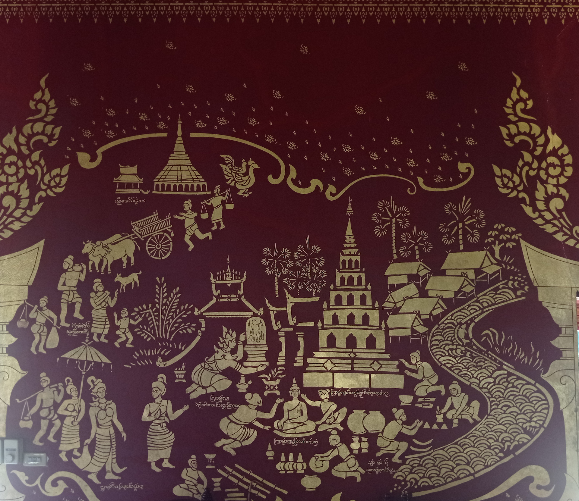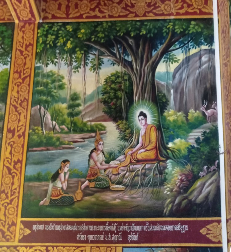 C’est dans ce complexe religieux que les filles nous expliquent les nombreuses illustrations sur les murs, représentant les différentes étapes de la vie de Bouddha, informations retenues du film vu à Bangkok.