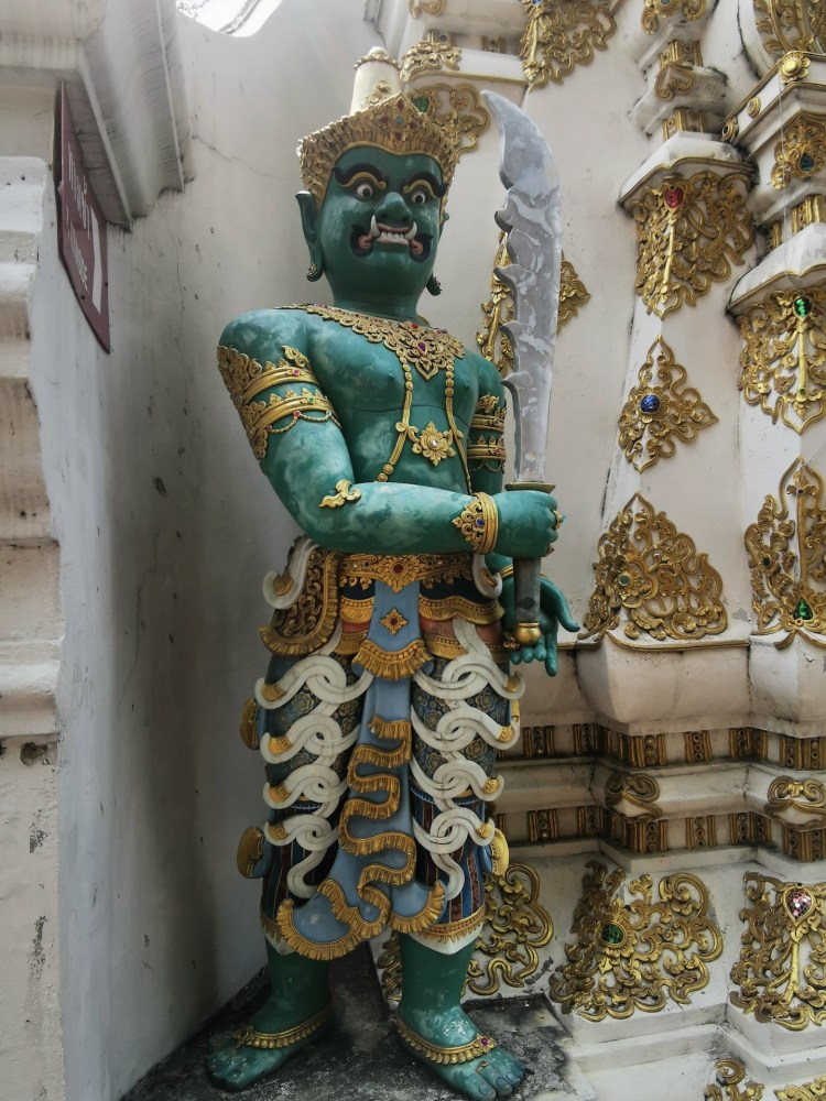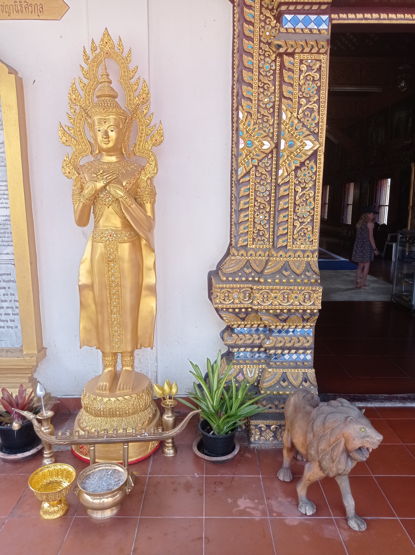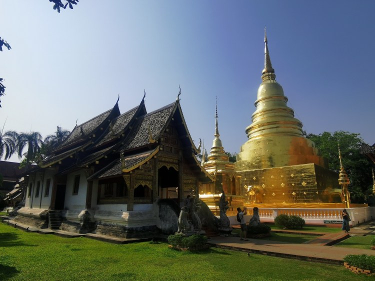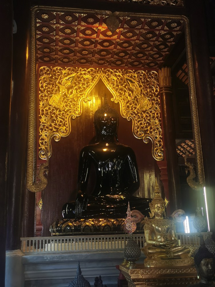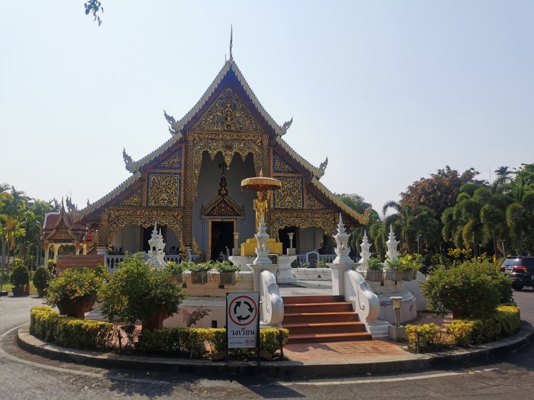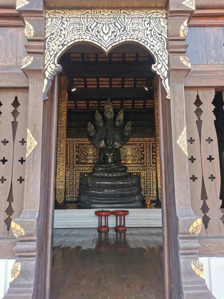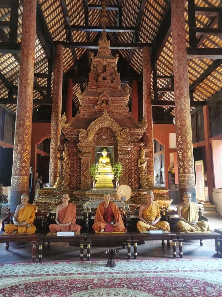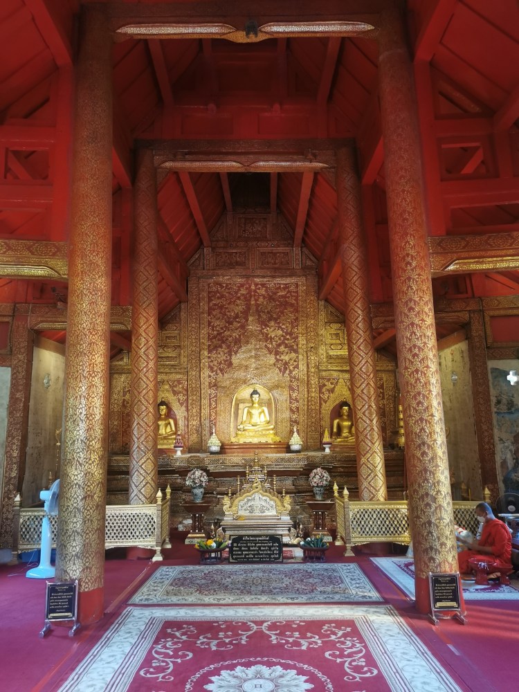 Nous n’en avons toujours pas fini avec les temples (ça râle un peu 😅 ), car nous nous dirigeons vers le Wat Phra Sing. Une des statues de ce temple vient du Sri Lanka et elle est portée en procession dans les rues de la ville pour le nouvel an. Les personnes jettent alors de l’eau sur la statue. Nous n’arrivons malheureusement pas à savoir laquelle c’est 🤦🏼♀️🤦🏼♂️!