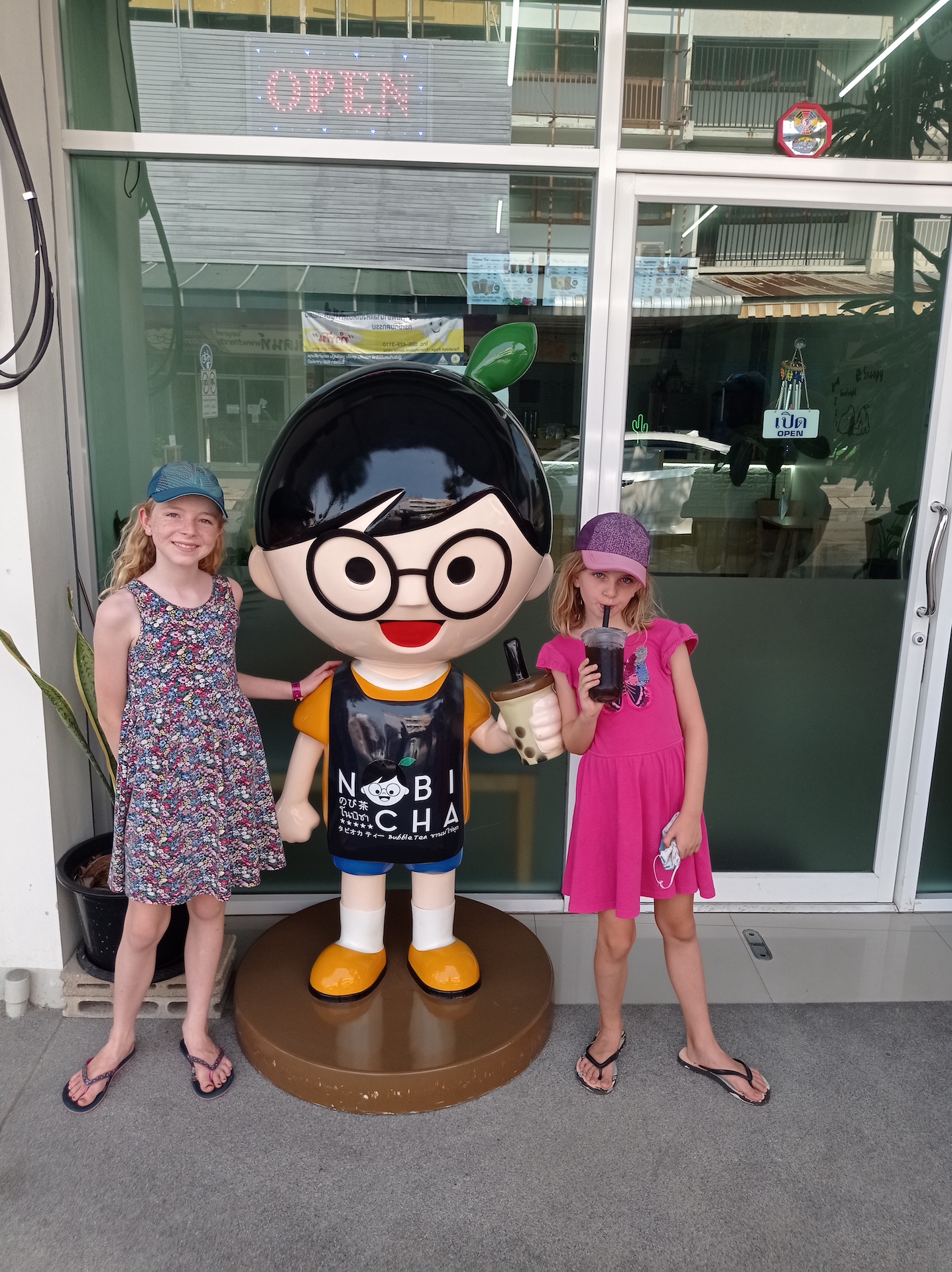 Nous constatons qu’il y a beaucoup plus de touristes et que les habitants parlent davantage anglais. De plus, chaque Thaï avec qui nous parlons connaît quelqu’un en Suisse ou connaît notre pays. Au début, nous sommes toujours un peu sceptiques car c’est souvent un moyen de nous vendre un tour! Mais régulièrement, ils peuvent vraiment nous parler de détails qui nous laissent à penser que, cette fois-ci, c’est vrai 😉. D’ailleurs, c’est étonnant comme les horaires des temples changent tout le temps car dès que vous mentionnez où vous allez, ce temple est comme par hasard fermé mais la personne connaît un temple « exclusivement ouvert aujourd’hui » (ou il y a aussi la version « exclusivement gratuit aujourd’hui ») où il peut nous emmener et il peut même nous emmener à tel ou tel endroit… (une longue liste s’en suit) 🙃. Quand ce sont des chauffeurs de tuk-tuk, tu te méfies, mais quand ce sont des personnes qui ont l’air de simples passants, ça fait très véridique… Au début! Heureusement, Philippe a déjà beaucoup lu à propos de ces « arnaques » et nous ne nous faisons pas avoir.