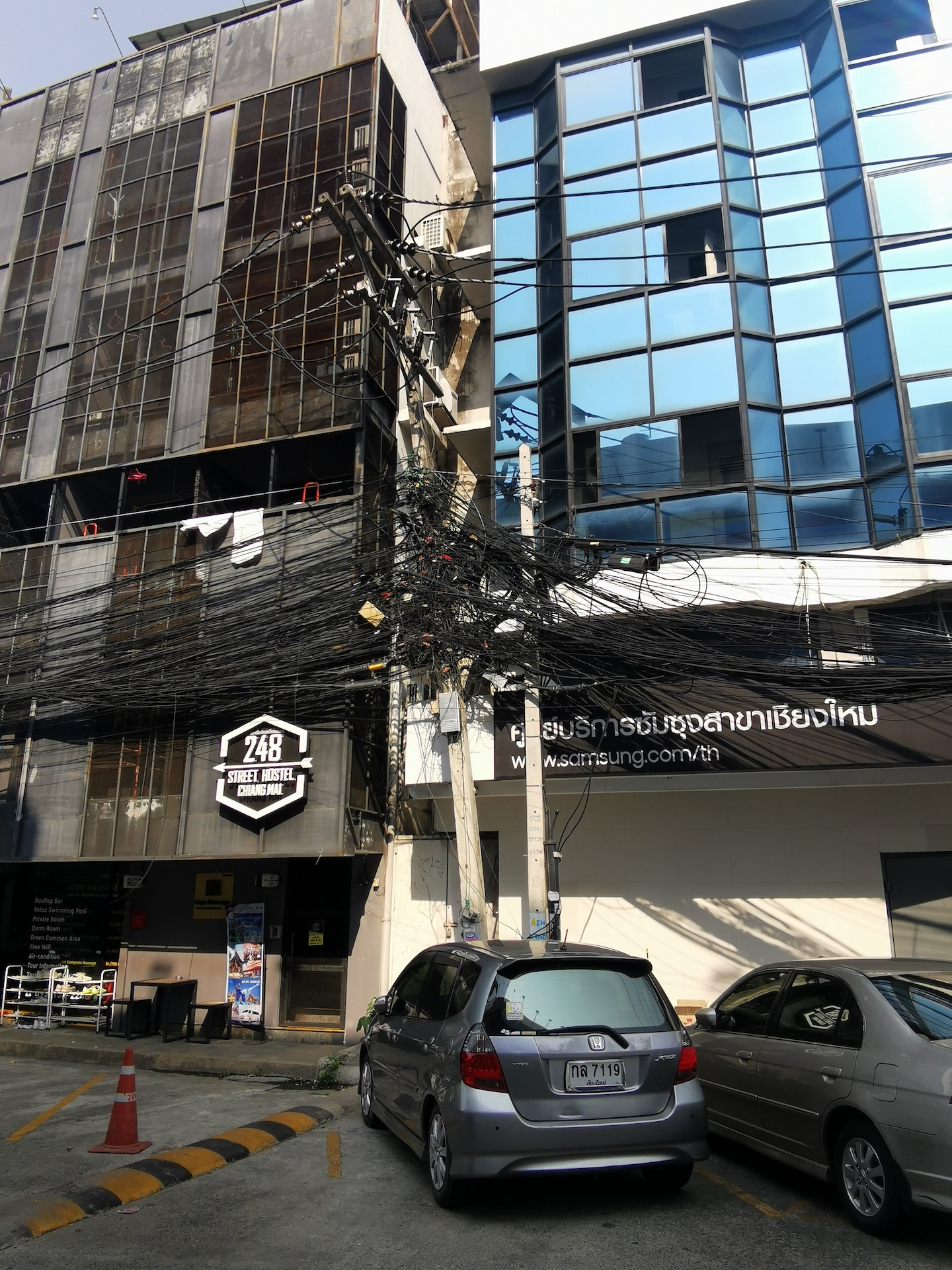 En chemin, nous pouvons admirer à la fois la beauté de la ville et ses aspects moins ragoûtants. Nous vous épargnons toutefois le visionnement des photos des rats et des cafards qui pullulent près des poubelles ou des évacuations d’eaux 😂 . Les enchevêtrements de câbles sont légions! Comme en Amérique du Sud, tous se passe dans les airs et aucune ligne n’est enterrée…