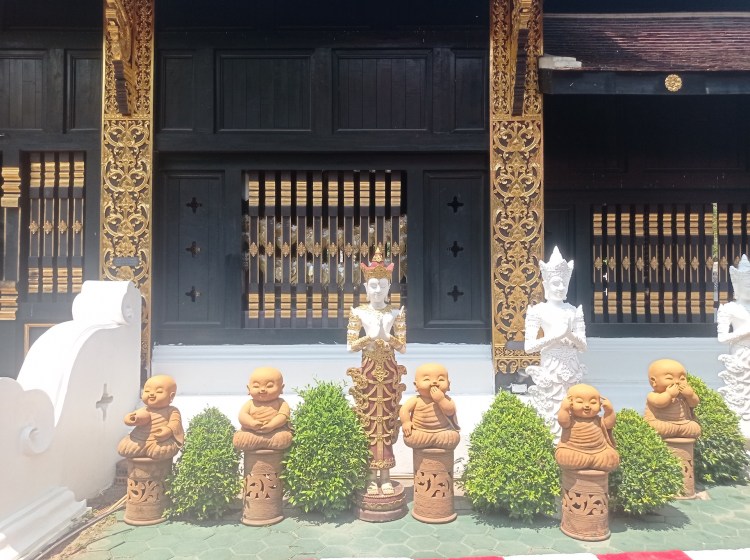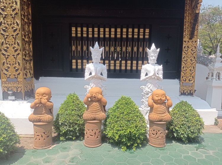 Le ventre bien rempli, nous partons visiter trois temples, facilement accessibles à pied car notre logement se trouve aux abords des remparts de la « vieille » ville: Wat Pa Pao, Wat Chiang Man et Wat Chiang Yuen.