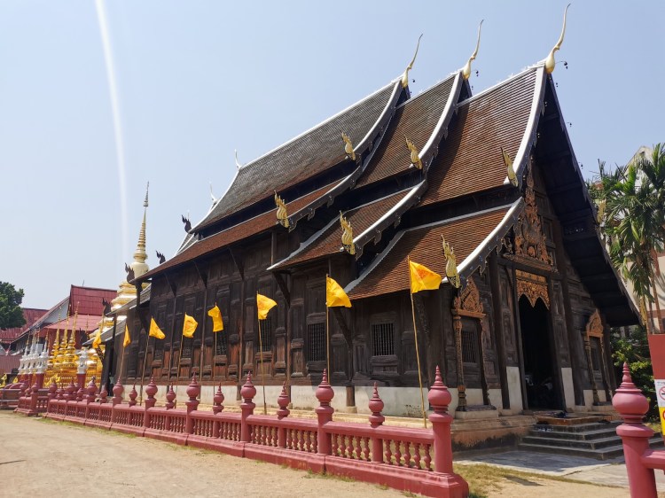 Nous arrivons donc comme prévu au Wat Pa Pao (Jungle of Pao trees), nommé ainsi car ce temple de la fin du XIXe siècle thaï (XIVe siècle pour notre calendrier grégorien) se situe sur le lieu d’une ancienne forêt.