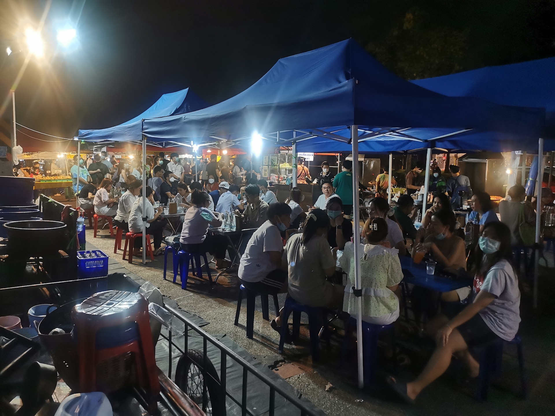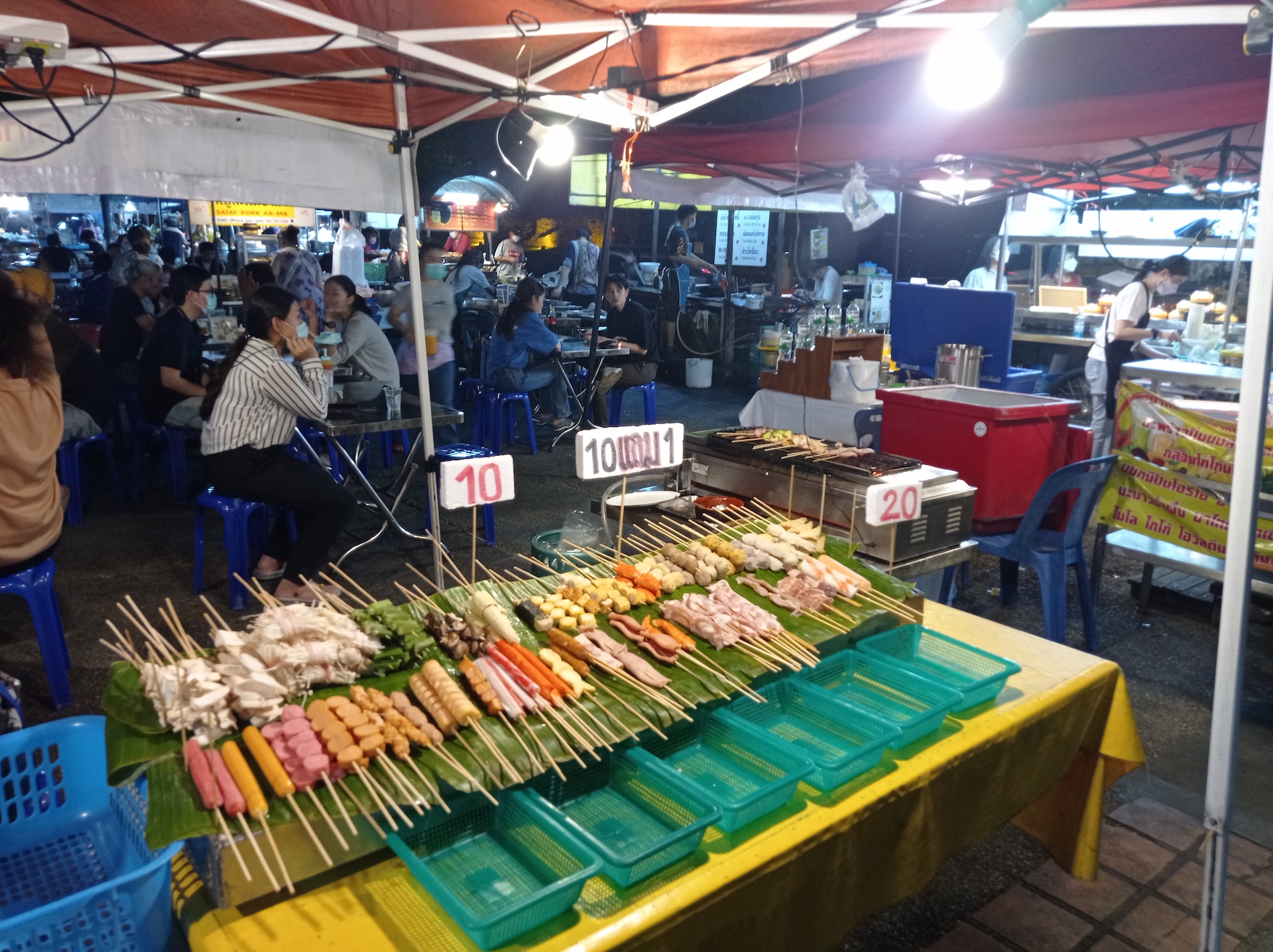 La nuit est tombée lorsque nous rentrons et nous sommes bien fourbus d’avoir tant marché. Nous allons donc au plus simple pour manger : le food night market juste à côté de l’hôtel. En plus c’est bon, alors pourquoi s’en priver!