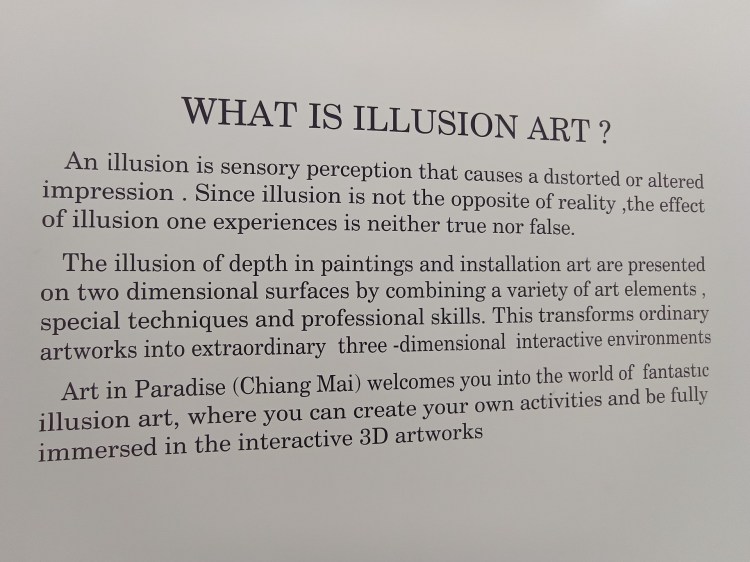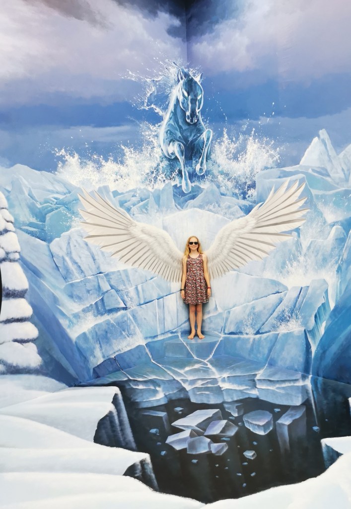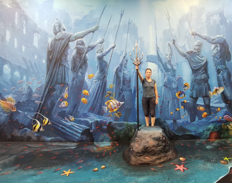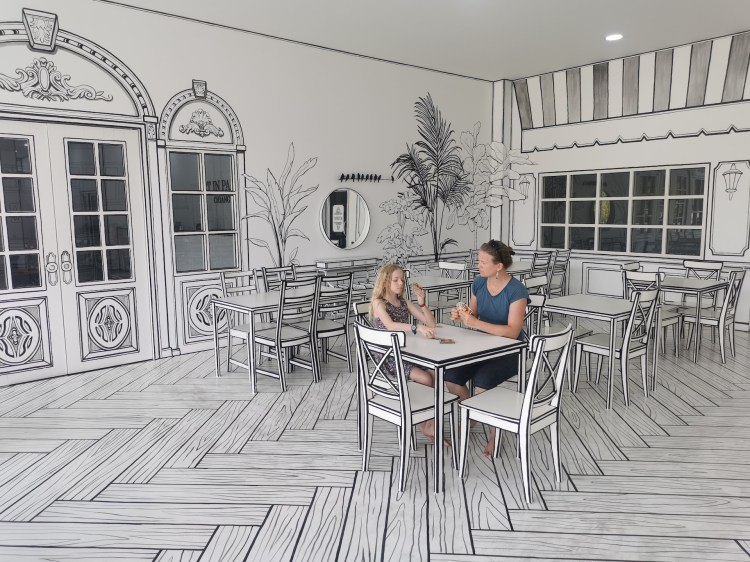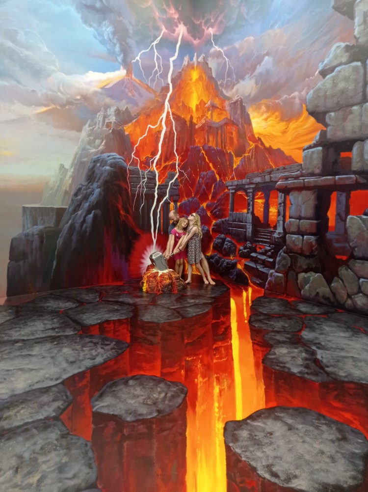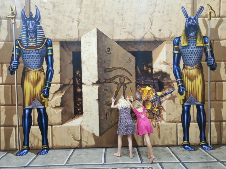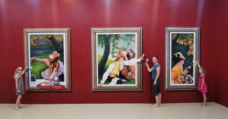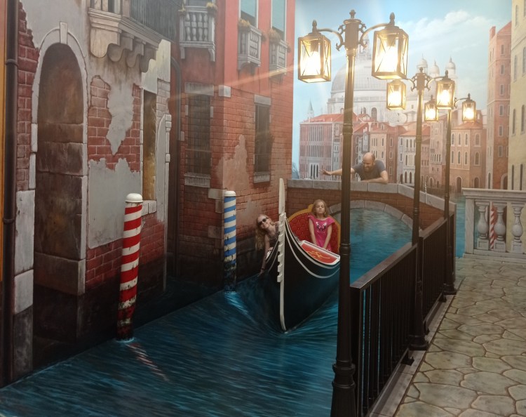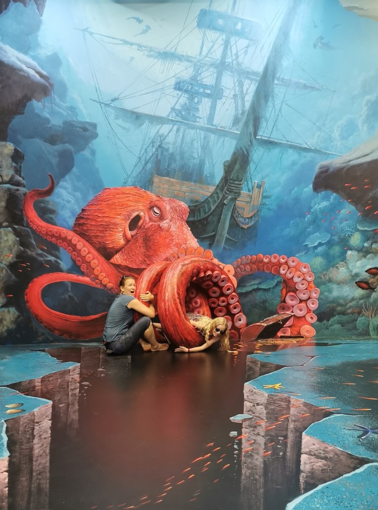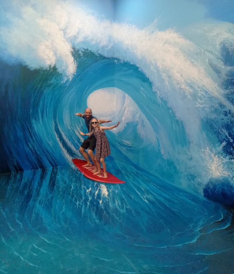 Après cette visite, nous rentrons pour sûr dans le XXIe siècle: nous allons visiter le 3D Art museum. Ce sont des salles entièrement peintes afin de créer des illusions d’optique. Nous constatons rapidement que dans certaines salles, il est nécessaire de faire la photo pour que le cerveau « corrige » la 3D. Sur place, le cerveau ne fait pas bien la correction et nous ne voyons pas toujours l’effet d’optique. Nous y passons une bonne heure et demie de mises en scène et de rigolades 😃! Nous étions seuls la première heure, et une famille nous rejoint sur la fin… Il faut dire que nous profitons à fond de chaque salle 🤪.